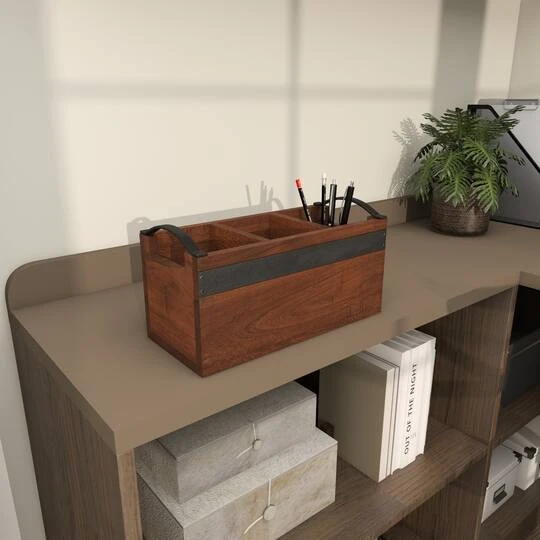 Inspired by sleek elegance and clean lines, a minimalistic design offers effortless luxury with monochromatic tones and bold, angular structures. The tray is made of durable mango wood to it strong and long lasting and has a warm, inviting brown finish that will look great in any room. It features black metal handles for easy carrying and a three section design for convenient storage.