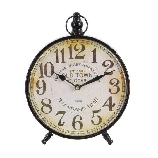 This 12″ Wide Round Vintage Black Metal Clock Set will add a kick in to your existing home décor by adding them as centerpieces, supplementary décor, or as time telling décor in your bedroom or study. Ideal for shelves or mantels in a vintage-themed room. Improve your management skills and keep a clock close by with this petite and charming piece. Round shaped, designed with knob and loop finial and iron peg feet. Features Arabic numerals and Roman numerals for the hour markers. Designed with black rubber stoppers at the base that prevent scratching furniture and table tops, as well as sliding around.