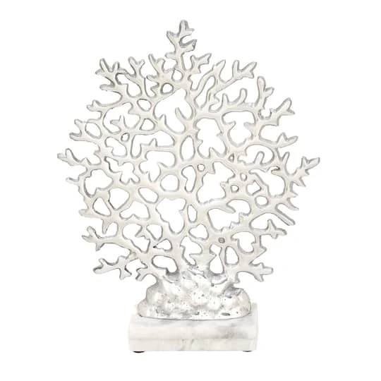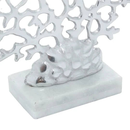 Bring the beach close to you with this nautical coral accent piece influenced by the calming sea. Featuring a shiny silver finish and a solid marble base this sculpture will add a lovely touch displayed on your coastal-inspired table, mantel or countertop.