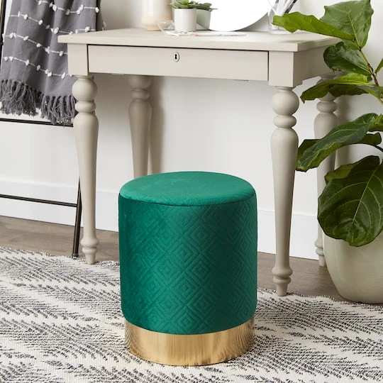 Add the finishing touch to your living room décor with this modern chic green velvet covered stool. The simple design will coordinate effortlessly with a multitude of décor and add a subtle touch of sheen to any room. Made of iron, sponge, and velvet polyester to create a sturdy and decorative home décor piece. Both functional and decorative, this stool will be a gorgeous piece for your home. Use as a comfortable footrest, stylish side table, or decorative accent to elevate your interior design! To clean the stool dust lightly or wipe with damp cloth as needed.