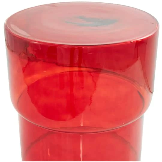 Embrace artistic expression with a style that highlights bold designs with sleek lines, neutral elements, and a minimalist aesthetic. This contemporary end table features a transparent glass structure for a sturdy and lasting design that can blend well with various décor styles. Update your home with the stylish design of this red modern side table for a bold statement piece that creates balance and depth. Show off this versatile accent table in your living room, bedroom, or home office with books and small decorative objects, or use it as a plant stand in empty corner spaces.