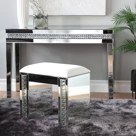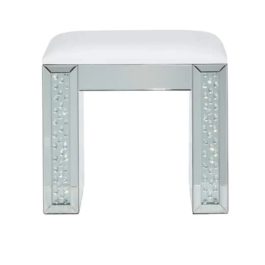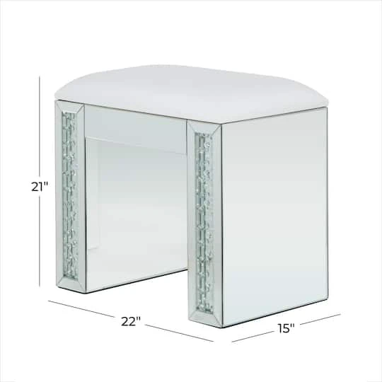 This wood and glass cushioned stool is designed to be attractive and stylish in any glam-styled space. So take a load off and relax on this decorative stool. Whether placed in your bedroom, living room, lobby, or game room, this decorative stool serve a luxurious welcome look. Designed with black rubber feet at the base to prevent scratching as well as sliding around.