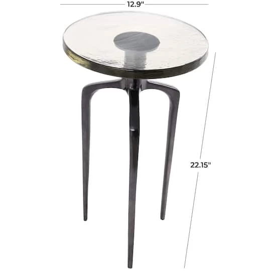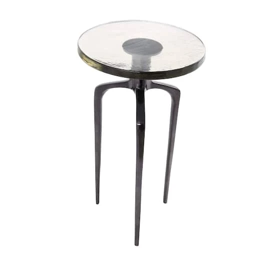 Embrace artistic expression with a style that highlights bold designs with sleek lines, neutral elements, and a minimalist aesthetic. This end table is crafted with a slim aluminum frame and a textured glass tabletop for a lasting design to stand the test of time. A unique accent furniture piece in a polished finish with a clear glass top for a bold and edgy design.