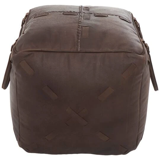 Crafted from quality leather and canvas, this rustic pouf is designed for both durability and comfort. It features a textured finish that adds a touch of character to any room. Place this versatile leather pouf in your living room or bedroom for an instant upgrade, and use it for extra seating or as an ottoman.
