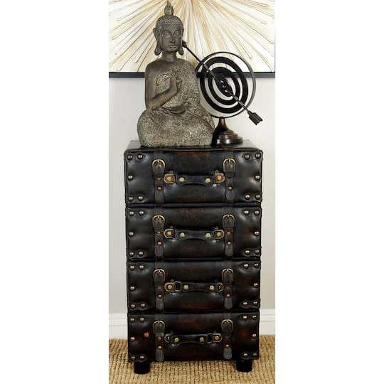 Organize in style with this traditional-themed faux leather side chest drawer placed in your living or bed room corner. Useful and elegant, chests are more than just a place to store clutter and place a lamp. Add a unique stylish storage to your living room, hallway, or bedroom with this chest.
