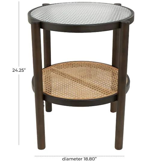 Inspired by sleek elegance and clean lines, a minimalistic design offers effortless luxury with monochromatic tones and bold, angular structures. It is made of high-quality wood, seagrass, and tempered glass making it durable and long-lasting. This round end table has a brown frame, seagrass brown shelf, and translucent glass top.