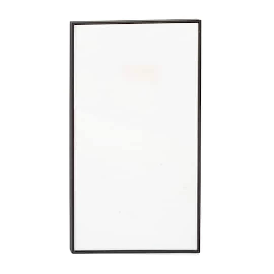The thin black frame and perfectly cut rectangular shape of this large mirror pays tribute to classic wall fixture designs. The clean lines exude a minimalist feel, inviting decorating ideas such as hanging on a solid-colored wall, placing a potted indoor plant at the bottom or on one side, and situating a metal dresser or console table with the same color scheme beside it.