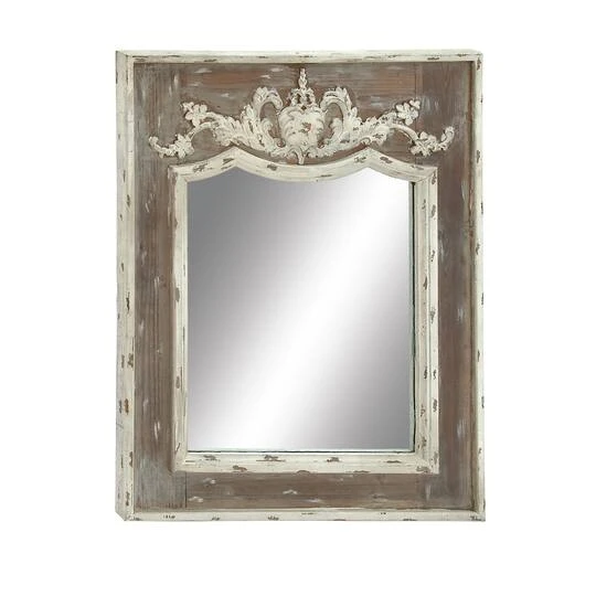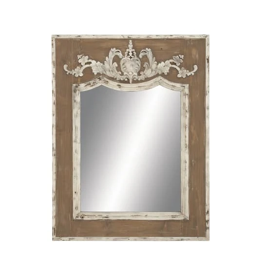 Add some elegance to your entryway, lobby, living room, or bedroom with this striking rectangular wall mirror. This is a scalloped mirror with a brown finish, whitewashed inner and outer borders, and embossed carvings. A built-in metal hook makes this mirror easy to hang. With its impressive look, this stunning mirror suits any home with a rustic interior. Apart from decorating your home, the purpose of this wall mirror is to bounce back outdoor light to a small room to make it look bigger. Pair this decorative wall mirror with house plants or other wall décor accent pieces to blend everything together perfectly.