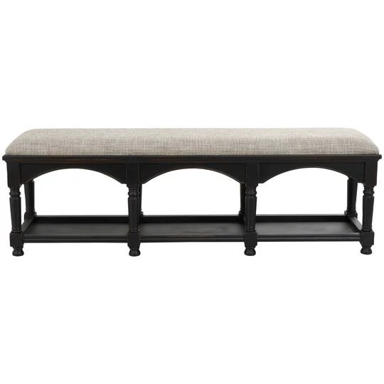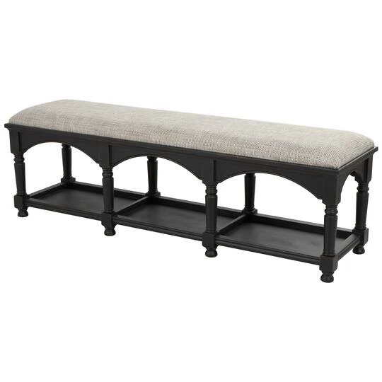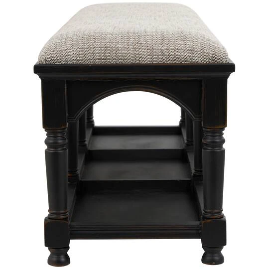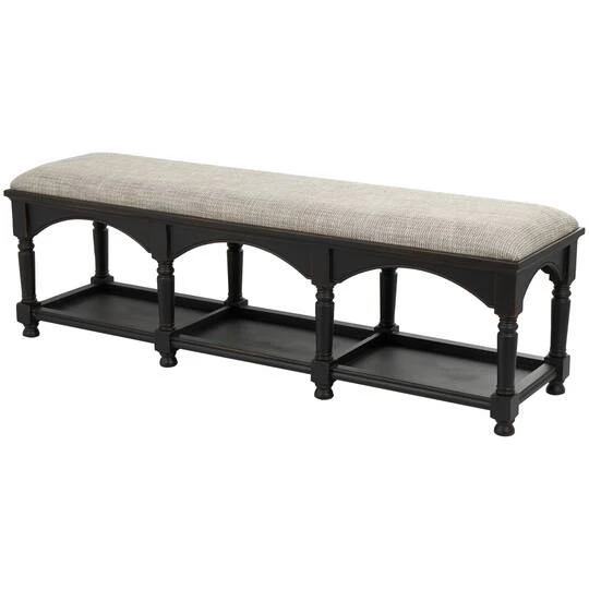 Designed with the essence of timeless sophistication, where rich old-world textures and warm hues come together for a refined classic taste of understated luxury. This entryway bench is crafted from foam and fabric with wood and MDF legs for added stability and support. Create additional seating in the home with this comfortable cushioned bench, featuring an elegant design and a lower shelf space for storage. Use this cream bench as an accent piece in your living room or bedroom, or place it in an entryway or hallway to provide a beautiful seating option.