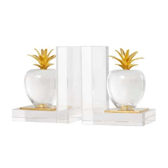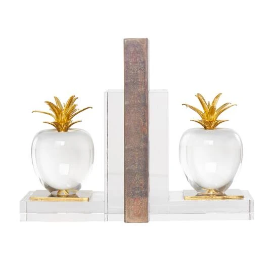 Embrace artistic expression with a style that highlights bold designs with sleek lines, neutral elements, and a minimalist aesthetic. The bookends are made from durable crystal glass and feature an intricate gold leaf design for an eye-catching look. This clear crystal apple bookend set has a beautiful glossy clear finish with gold leaves that adds a touch of elegance to any room. These bookends are perfect for holding books, magazines, or other items in place on shelves or desks. They can also be used as decorative accents to add a bit of style to any space. Designed with felt or rubber stoppers at the base that prevent scratching furniture and table tops, as well as sliding around. Crystal bookends make a great gift for any occasion.