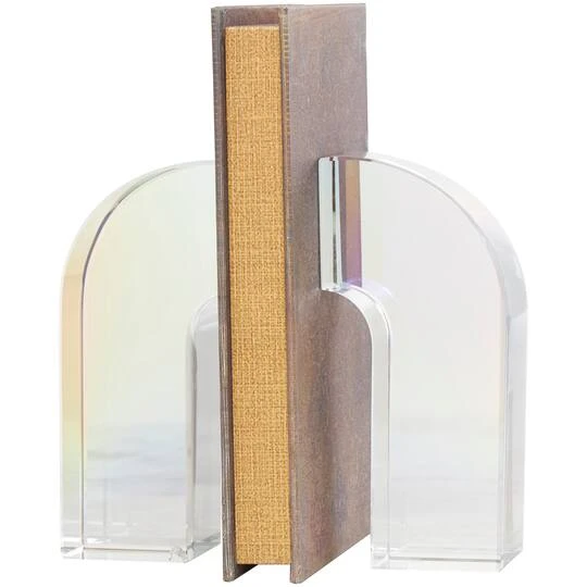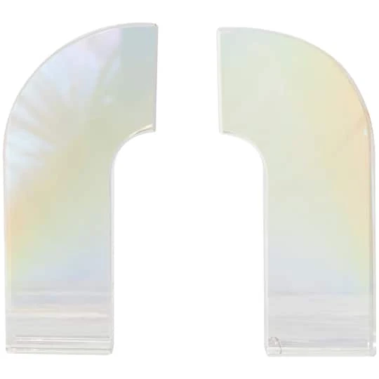 Embrace artistic expression with a style that highlights bold designs with sleek lines, neutral elements, and a minimalist aesthetic. The bookends are made from durable crystal glass material, ensuring lasting use and reliability. The clear bookends set has a sleek and modern finish with rainbow hues that will add sophistication to any décor. These bookends feature an arched design and can be used to stylishly hold books in place on shelves or desks. They are the perfect addition to any home office or library, giving your favorite books a beautiful display. Designed with felt or rubber stoppers at the base that prevent scratching furniture and table tops, as well as sliding around. Crystal bookends make a great gift for any occasion.
