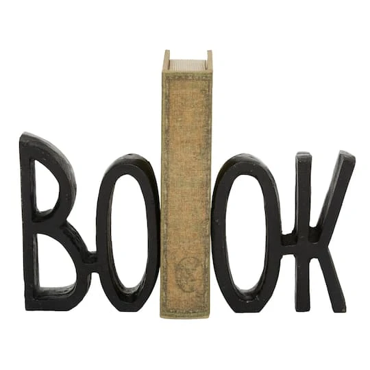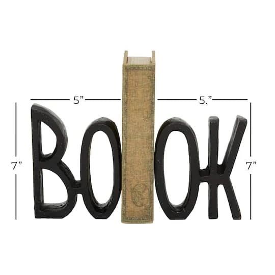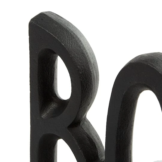 Replace your old, outdated bookends with this set of black “BOOK” sculptured metal bookends! The two pieces together form all caps “BOOK” spelled out in a long, narrow font with slightly raised ends for a modestly curved silhouette along the top. The matte black finish suits modern and contemporary spaces, while also working with any color palette in any style room. The dimpled texture of the aluminum adds some stylish character, as well.
