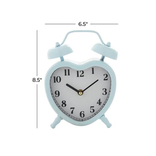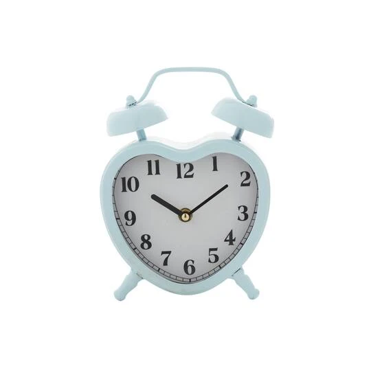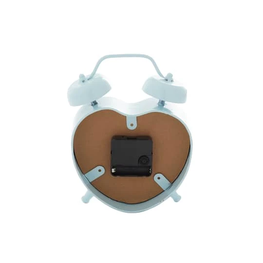 Feel the ticking of time with this retro heart-shaped metal table clock. This decorative clock is crafted into a heart-shaped frame with alarm bells and two leg stands that highlight a soft sheen finish. Place as a standalone piece or accent décor for your bedside table, console or kitchen counter.