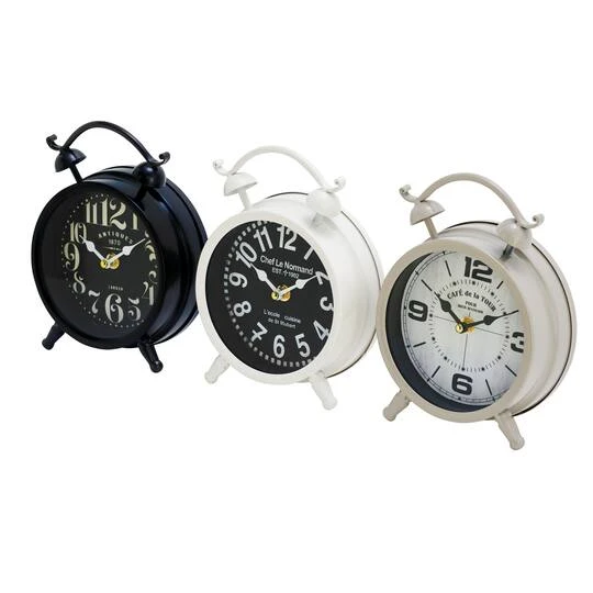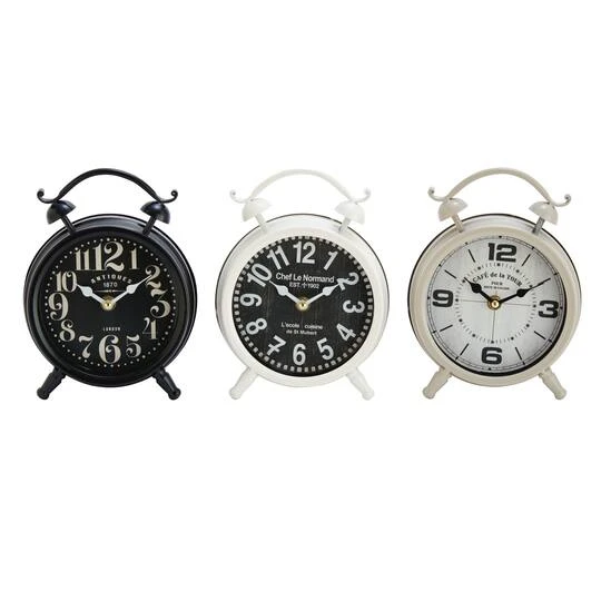 Spread vintage vibes throughout your home while maintaining a distinct level of style with this fantastic vintage clock set. These round clocks featuring antique-style feet and bells will provide the finishing touch for your shabby chic, antique, farmhouse or French provincial style bedside table, kitchen counter or office desk.
