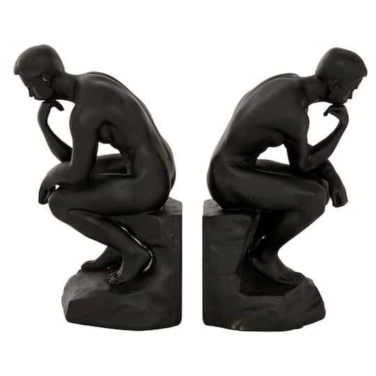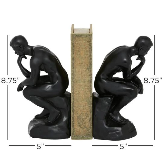 The Thinker bookends are made with a decorative and functional design that lets them be used together or separately as eye-catching desk accessories and as reliable bookstands anywhere in the house. Placed on your office or library shelves, tables, or consoles, this bookend set is sure to bring some style and class to your room. Keep your books and magazine organize with this quirky and adorable bookends. Designed with rubber stoppers at the base that prevent scratching furniture and table tops, as well as sliding around.