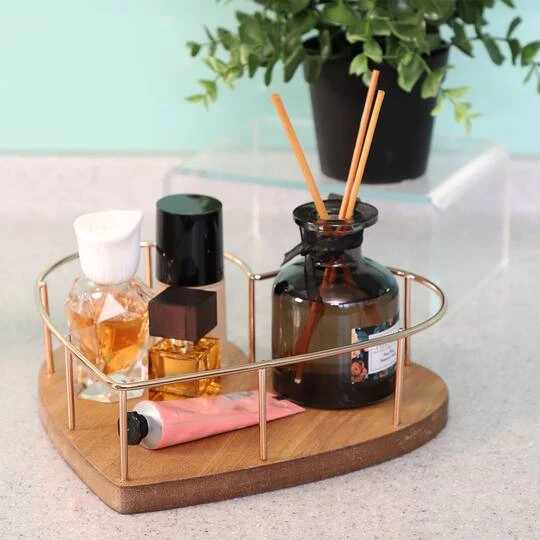 This heart shape tray with wooden base is perfect to organize and showcase your items.
