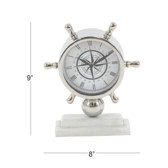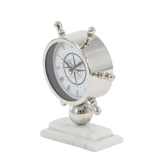 Even the captain of a ship needs to keep an eye on the time. This nautical stainless-steel clock is shaped like a boat’s wheel—or helm, and sits atop a gorgeous white stoneware base. The face, which displays Roman numeral markings, is reminiscent of a compass. Add this clock to a coastal-style bedroom, living room or home office for the perfect finishing touch.