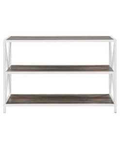 Walker Edison Edison Walker 32″ Solid White & Grey Wash Two-Tone Sliding Slat Door Accent Cabinet