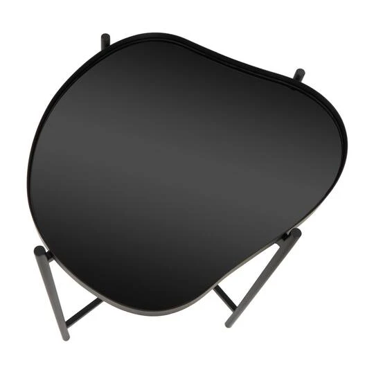 Embrace artistic expression with a style that highlights bold designs with sleek lines, neutral elements, and a minimalist aesthetic. Crafted from a combination of iron and tempered glass, this table features a sleek abstract design that will add a touch of sophistication to any room. Contemporary accent table features an asymmetrical wavy shape in a polished black finish with a black shaded glass top. This unique modern table provides an eye-catching focal point in any room and adds additional display space in the home. Use this abstract table as a side table, nightstand, or plant stand and style it with a patterned vase and small decorative sculpture.