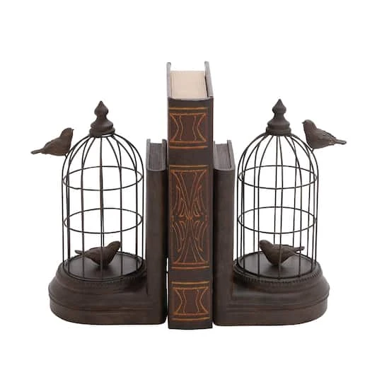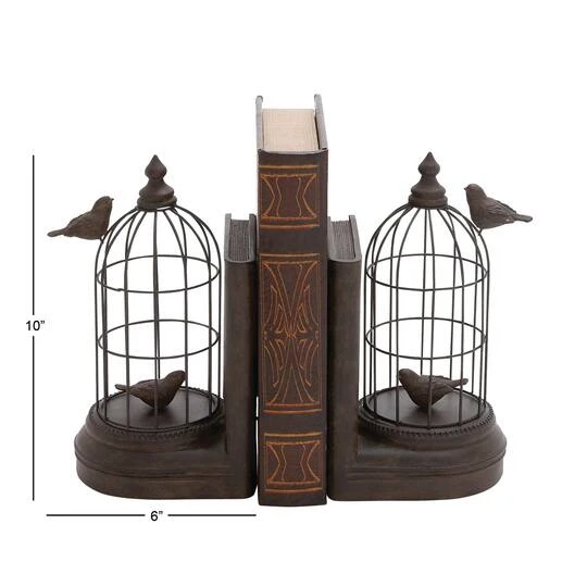 This Black Metal Farmhouse Birdcage Bookends Set is made with a decorative and functional design that lets them be used together or separately as eye-catching desk accessories and as reliable bookstands anywhere in the house. Placed on your office or library shelves, tables or consoles, this bookend set is sure to bring some style and class to your room. Keep your books and magazine organized with these quirky and adorable bookends. Designed with black rubber stoppers at the base that prevent scratching furniture and table tops, as well as sliding around.