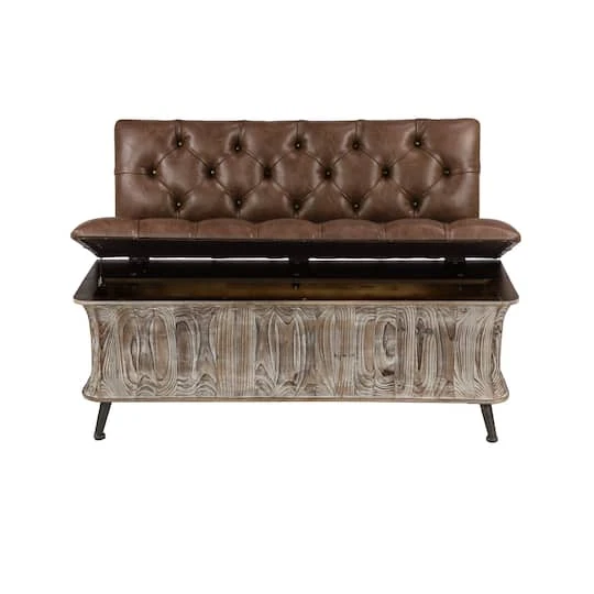 Excellent multi-purpose vintage and rustic living room furniture that serves as comfy seating and hidden home storage for throw blankets, linens, toys, and more. Organizing isn’t boring when you have an amazing storage unit at your disposal. Filled with shoes, books, blankets and more, these storage units are a stylish and convenient way to store your stuff. Designed with protective tip at the base that prevent scratching furniture and table tops, as well as sliding around. This item comes shipped in one carton. This item has a faux leather seat with foam cushion. Wipe clean with a dry cloth. Suitable for indoor use only. 250 lbs. max weight limit. Rustic design