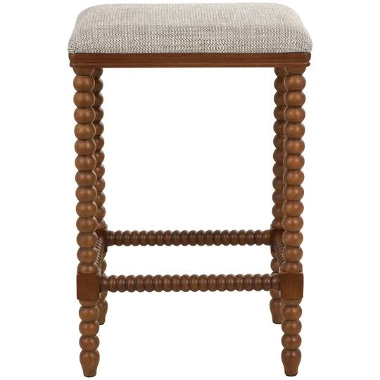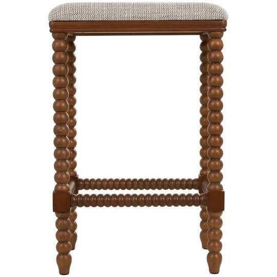 Designed with the essence of timeless sophistication, where rich old-world textures and warm hues come together for a refined classic taste of understated luxury. Counter stool seat is crafted from foam and fabric with wood and MDF legs for added stability and support. Traditional wood counter stool has a rich, dark brown finish and beige fabric seat that will add a classic touch to any home. Create additional seating in the home with this comfortable cushioned stool, featuring an elegant design and lower footrest. Use this wood stool as extra seating space in the kitchen or dining room for family and friends to gather around.