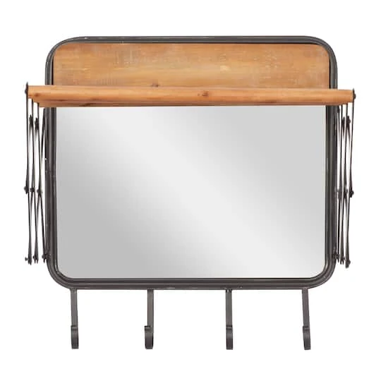 In your entryway, hallway, kitchen or bedroom, add some storage with some style with this wall hook. Great for hanging coats, purses, bookbags, and scarves, this wall hook is as functional as it is stylish. Give any room of your traditional style inspired home an upgrade with this wall hook. Designed with a retractable rack and a mirror. Easily hanging using hanging hardware on the back. Suitable for indoor use only. Each hook holds 5 to 8 lbs. Designed with an industrial theme. Hardware on the back allows for easy hanging. This item comes shipped in one carton. Each hook holds 5 to 8 lbs.