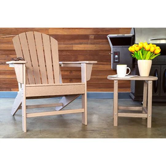 Place this traditional brown Adirondack chair next to your patio seating, near the pool, garden or challenge your creativity by bringing it inside for a unique appeal. It’s the perfect chair to lounge in, featuring a low profile tilt seating, a high back and comfortable thick slats to help keep your posture supported.