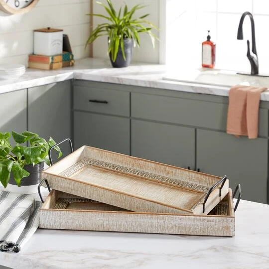Get organizing and decorating a chic vibe with these Bohemian carved wood trays placed on your counters or console tables. Whether in your kitchen, or on your coffee table, it’s a great way to display and store your favorite things. A storage piece that is spacious for your trinkets or decorative goods on your mantle, coffee table or kitchen counter.