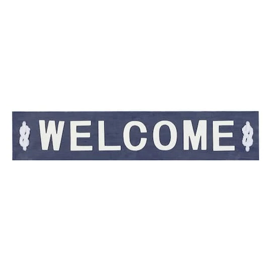 Coastal Blue And White Wood And Metal Welcome Sign, 6″ X 32″ X 2″