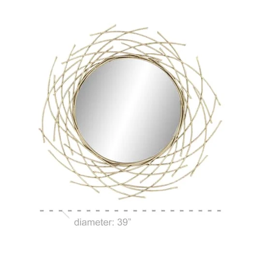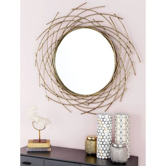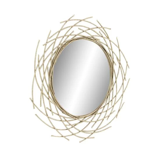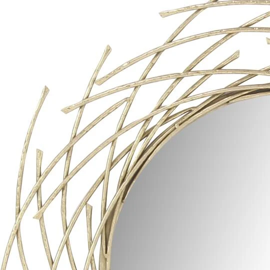 It’s time to glam it up with this large metal wall mirror featuring layered twig-like bars around the frame. This mirror flaunts a level of versatility with its gold finish and both glam and natural themed looks that will make it the staple piece in your living room or dining area.