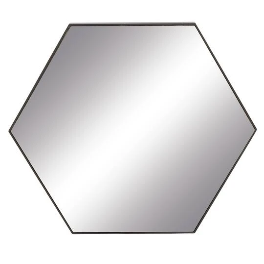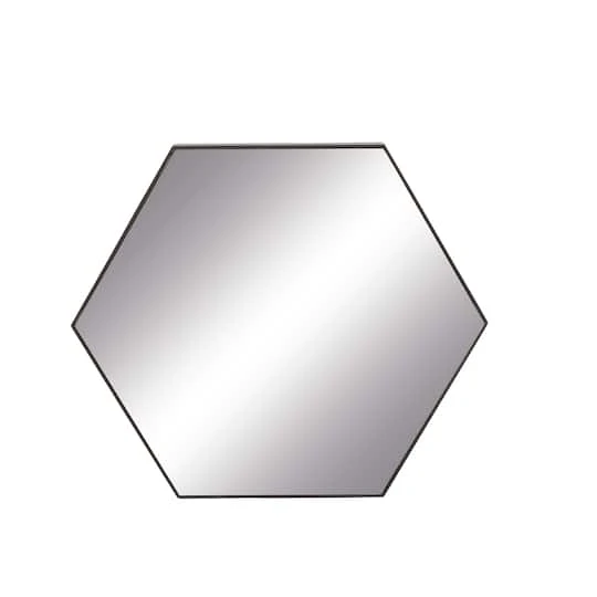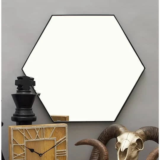 Accentuate your other modern and contemporary geometric decor with this hexagon wall mirror with a simple, thin, black wood frame. Clean lines forming the simple hexagon shape avoids a cluttered wall, letting your accent decor and furniture do all the talking. Create an excellent focal point on your walls paired with some cute accent tables, and level up your home with this amazing wall Decor. Easy and ready to hang by hardware in the back. Suitable for indoor use only. This item comes shipped in one carton.