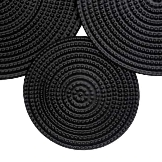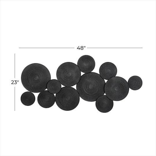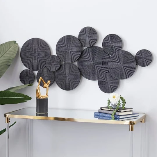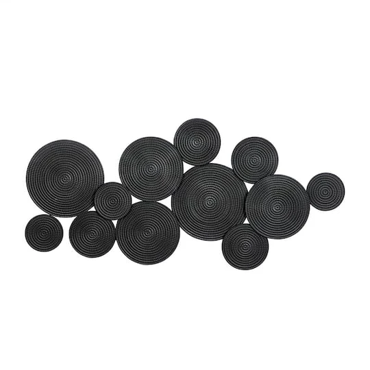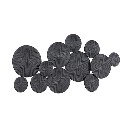 Create an inviting and playful atmosphere with this black hammered wall décor! Appreciate their design best against solid-colored backgrounds in contemporary settings. They make great unique décor above mantle, console table or in any living space wall.