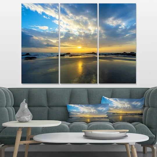 Designart – Beautiful Sunrise And Seashore – Large Seashore Canvas Wall Art