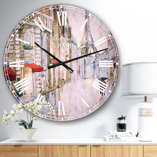 A beautiful addition to any home or office, this French Country round wall clock is made on 100% solid aluminum. It has a highly reflective glossy finish creating a sleek modern look. This Love in Paris III wall clock arrives completely ready to hang on the wall. Simply insert the “AA” battery included with your order. Available in several sizes, this Modern Oversized Clock makes it the focal point of any room.
