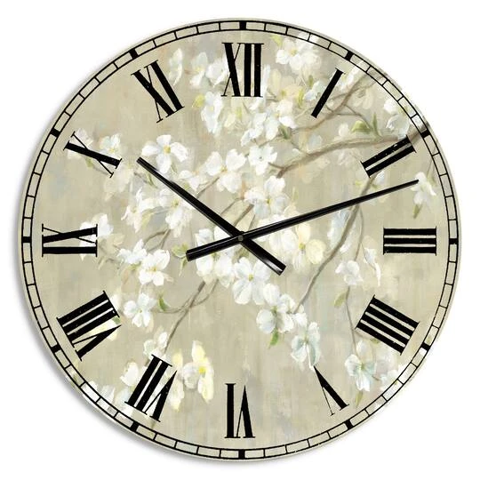 A beautiful addition to any home or office, this Farmhouse round wall clock is made on 100% solid aluminum. It has a highly reflective glossy finish creating a sleek modern look. This Dogwood in Spring Neutral wall clock arrives completely ready to hang on the wall. Simply insert the “AA” battery included with your order. Available in several size, this Clock makes it the focal point of any room. Features – Ultra Gloss Coating ensures colors are extra vibrant with light reflection. 1″ mounting frame gives the illusion of artwork floating on the wall. High quality digital images are created directly into a glossy aluminum panel, producing a stunning and captivating print in the glossy finish of the metal. Looks better than any photo paper and guaranteed to last at least 20 years. Easy to hang.