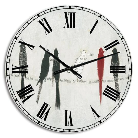 A beautiful addition to any home or office, this Traditional round wall clock is made on 100% solid aluminum. It has a highly reflective glossy finish creating a sleek modern look. This Red Catching Up Bird Family wall clock arrives completely ready to hang on the wall. Simply insert the “AA” battery included with your order. Available in several sizes, this Modern Oversized Clock makes it the focal point of any room.