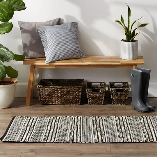Whether your home interior is traditional or trendy, this makes a perfect area rug, kitchen rug, bathroom rug, entry way rug, apartment rug, dorm room rug and more. Every handloomed rug is unique and woven with multiple colored threads to create this one of a kind look. Use with non slip rug pad for best results and to avoid transfer of color.