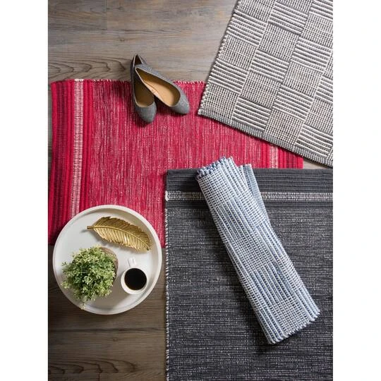 This makes a perfect area rug, kitchen rug, bathroom rug, entry way rug, apartment rug, dorm room rug and more. Due to the rag rug process, this area rug is long lasting and stands up to wear and tear – double sided for longer life. Rugs are made of a lightweight material that can be rolled or folded for storage and for a quick clean simply spray with a hose or sweep up debris with a broom. Recommend using a rug pad to avoid transfer of color.