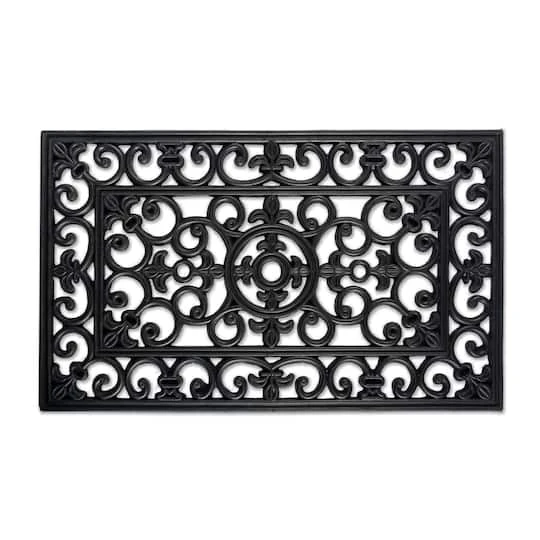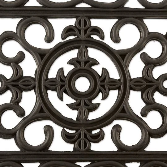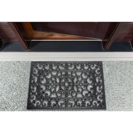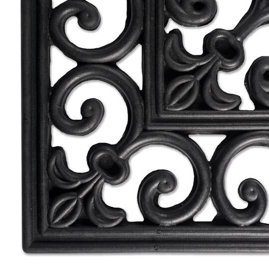 Classical wrought iron design inspired from French grills. This elegant doormat offers a decorative look with unique features. Made from black rubber, it easily cleans grass, mud and snow from your shoes, keeping them out of your home. Beautifies entrance to your home and easy to clean.