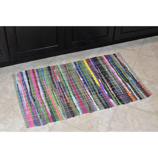 This rug makes a perfect area rug for under a small table, kitchen mat, bathroom rug, entry way rug, garage mat, and more. Average size is 2.25ft. x 6ft., size and color will slightly vary because product is handmade from recycled fabrics. Due to the manufacturing process, each rug is completely unique – you may see slight variations in color and size – no two rugs are identical. Be sure to place rug gripper to prevent slipping and, as this is a hand dyed product, color may bleed. These rag rugs are specially crafted to be long lasting and stand up to everyday wear and tear. Great for high traffic areas in a garage or entryway – double sided for longer life. Use of a rug liner between flooring or carpeted surfaces is highly recommended to help prevent transfer of colors.