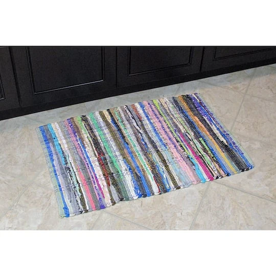 This rug makes a perfect area rug for under a small table, kitchen mat, bathroom rug, entry way rug, garage mat, and more. Average size is 4ft x 6ft., size and color will slightly vary because product is handmade from recycled fabrics. Due to the manufacturing process, each rug is completely unique – you may see slight variations in color and size – no two rugs are identical. Be sure to place rug gripper to prevent slipping and, as this is a hand dyed product, color may bleed. These rag rugs are specially crafted to be long lasting and stand up to everyday wear and tear. Great for high traffic areas in a garage or entryway – double sided for longer life. Use of a rug liner between flooring or carpeted surfaces is highly recommended to help prevent transfer of colors.