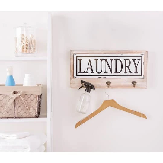 Place this accent on your laundry room wall to add character and charm! Use the hooks to hang towels for you and your guests.