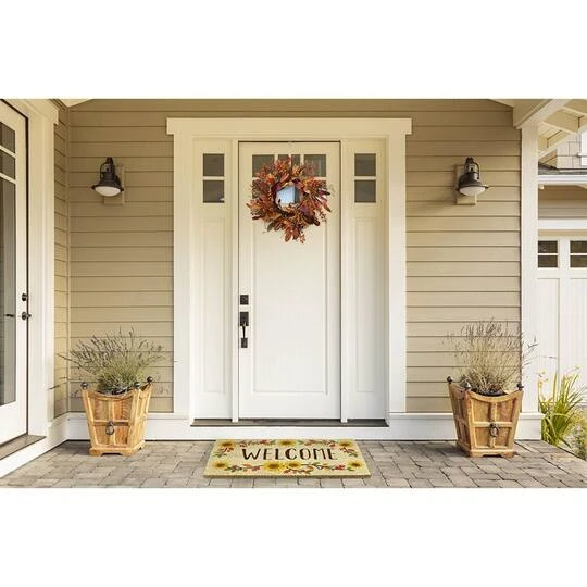 The natural fiber face provides the perfect surface for guests to wipe their shoes before entering your home. This doormat measures 18″ by 30″ and is 1/2″ thick to allow your door to easily pass over the mat without getting stuck. Use it on a patio, in a garage, laundry room, entryway, and anywhere there is high traffic from outside.