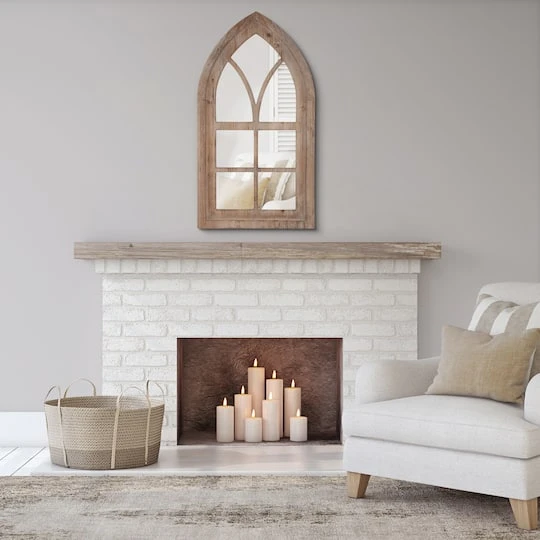 With a vintage farmhouse design and distressed finish, this mirror features a gothic architecture window frame. Metal d-ring hangers are attached on the back of mirror for easy wall display in any area of your home. The mirror is an eye-catching and unique accent piece of art in your bedroom, living room, bathroom, entryway, mantel or anywhere you want for a rustic fusion of decoration and function.