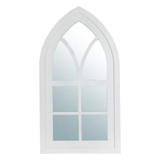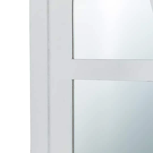 Featuring vintage farmhouse style with wash white cathedral windowpane design, this wall mirror décor is perfect for opening up your room space, giving you an reflective brighter sight around your room. It’s made with a fir wood frame, and secured with an MDF board on the back of the mirror. Luxurious and elegant. Metal hoist hanger is attached on the back of mirror for easy wall display in any area of your home. The mirror is an eye-catching and amazing accent piece of art in your bedroom, living room, bathroom, entryway, or anywhere you want for a modern fusion of decoration and function.