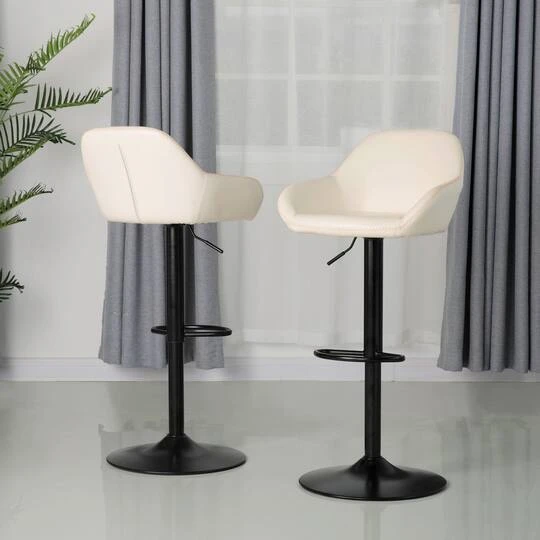 Glitzhome® Mid-Century Leatherette Gaslift Adjustable Swivel Bar Stool Set Coconut Milk