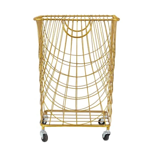This storage cart is a refined and stunning statement piece that gives function and unique display in any space with its deep basket style cart. Keep your space a clutter free zone with this conveniently designed storage cart. A sturdy structure with smooth caster wheels for optimal mobility. This item comes shipped in one carton. Suitable for indoor use only. Glam Style. Maximum weight limit is 20 lbs.