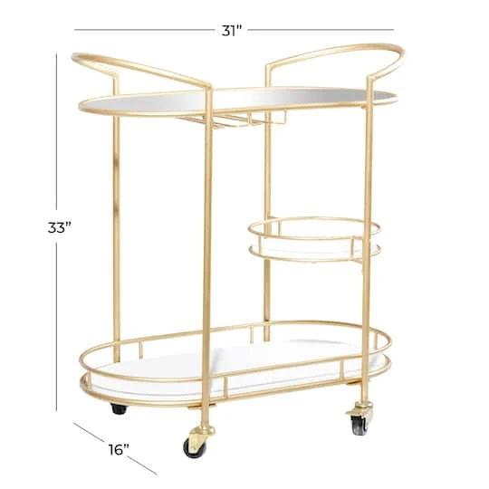 Gold Metal Contemporary Bar Cart, 33″ X 31″ X 16″