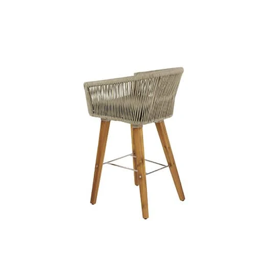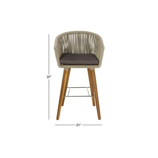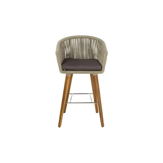 This comfortable and stylish indoor/outdoor bar stool will be a great addition to your dining and patio bar space. It also matches with neutral and wood outdoor tables. The curved back and armrest with cushion seat provide optimal all day support.